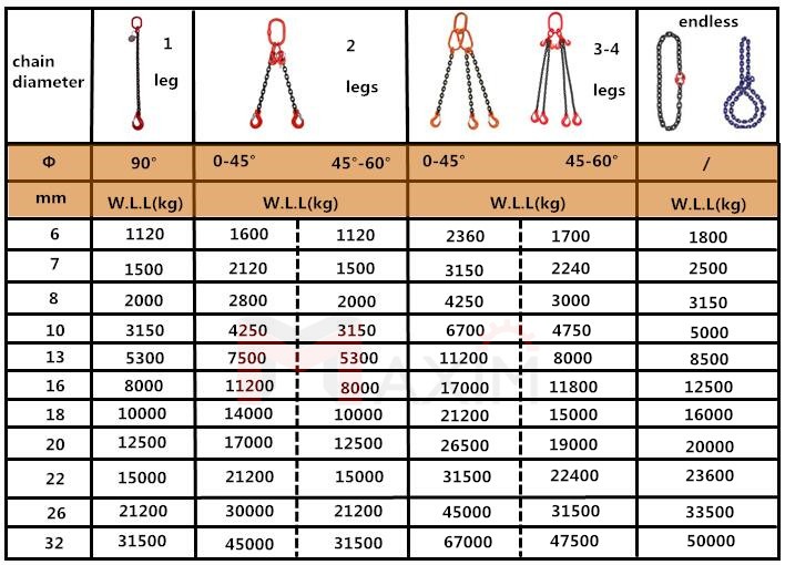 Tensile Strength Testing certified four leg grade 100/80 chain sling with oblong master link and self locking hooks ,coupling hammerlock link, shortners.Made from Grade 100/80 chain and fittings. Includes a metal tag with date, type, grade, chain size, length, working load limit, and serial number. Safety factor of 4:1. Supper alloy steel after quenched and tempered.