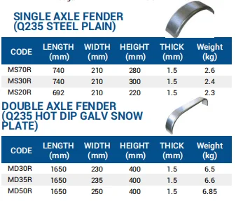 Heavy Duty Trailer Accessories Single Galvanized Axle Fender