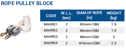 Multi‑Rope Hoist Pulley With Hook Strength Lifting Tool Pulley Block2 ton hand block and tackle (4000 pounds) capacity four wheel rope pulley hoist. The hand manual rope combines of zinc plated drop forged eye sling hooks and clips,pulley as well as 65ft*5/16 heavy duty poly rope. It is ideal easy using and inexpensive product for lifting most heavy objects, up to 4000 lbs. Base on the pulley lever theorem, 7:1 lifting power design makes you easy to lift. It is a great product for housing, fishing, camping and boating, as well as a must have for private application. The lightweight design provides the portability and storage.